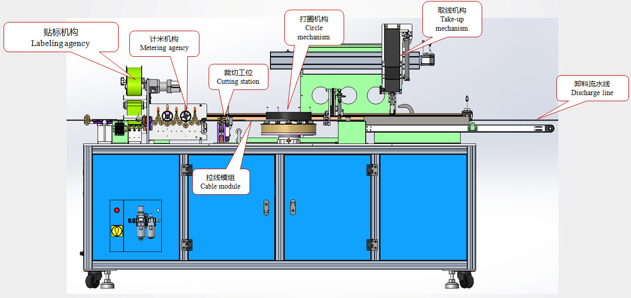 衆力線材裁切貼标打卷一體機